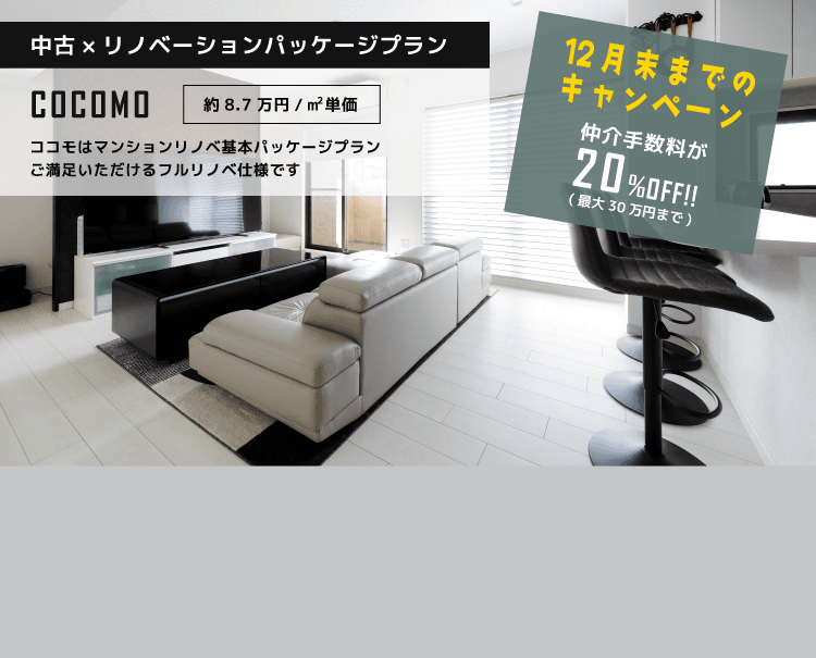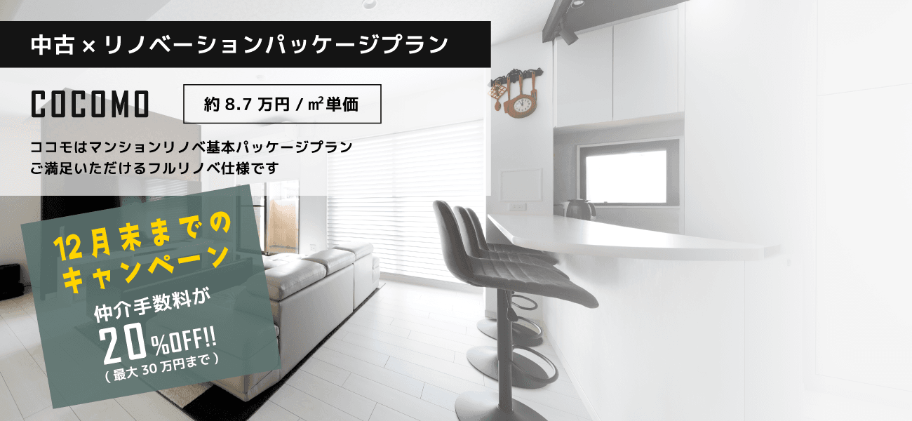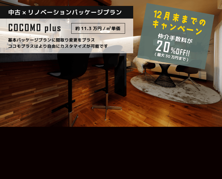 - 【今だけ】COCOMOリノベ×中古住宅で仲介手数料が最大30万円お得に!