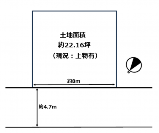 ◆土地面積約22.16坪 ◆北西側間口約8m ◆現況:上物有 ◆建築条件なし