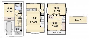 - システムキッチン、カウンターキッチン、シャンプードレッサー、洗浄便座、ウォークインクローゼット、ロフト、モニタ付インターホン、トイレ2箇所