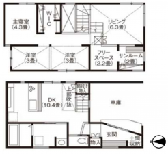 ◆土地面積約22.02坪 ◆スキップフロア式の3LDK ◆シューズインクローゼット+ウォークインクローゼットの大容量収納