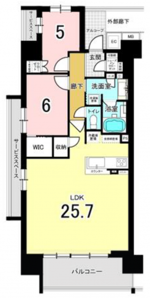 ■專有面積: 80.96㎡(壁芯) ■25.7帖の広々LDK ■12階部分・角住戸につき日当たり・眺望良好