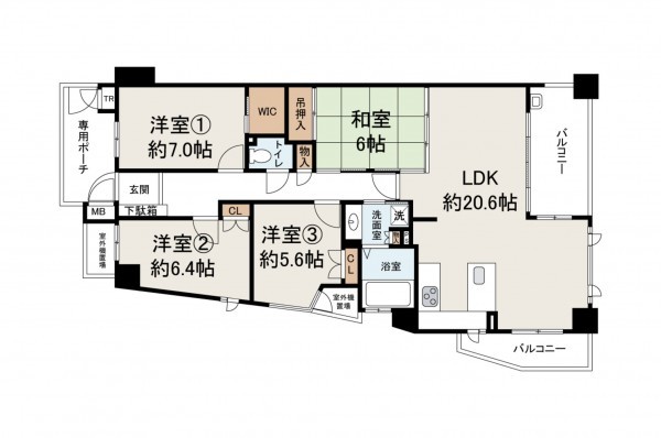 - システムキッチン、カウンターキッチン、食器洗浄乾燥機、シャンプードレッサー、洗浄便座、ウォークインクローゼット、オートロック、角部屋、エレベーター、宅配ボックス